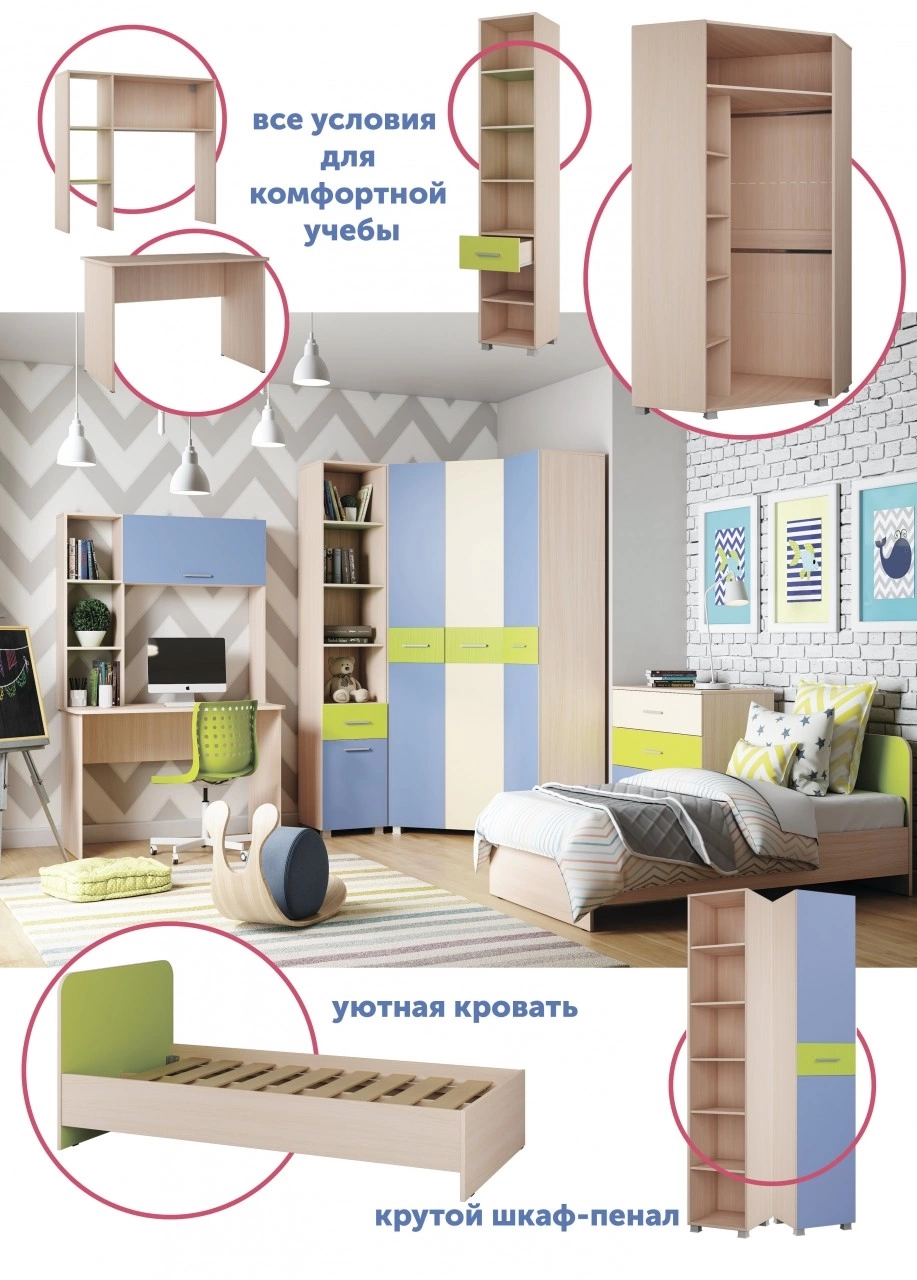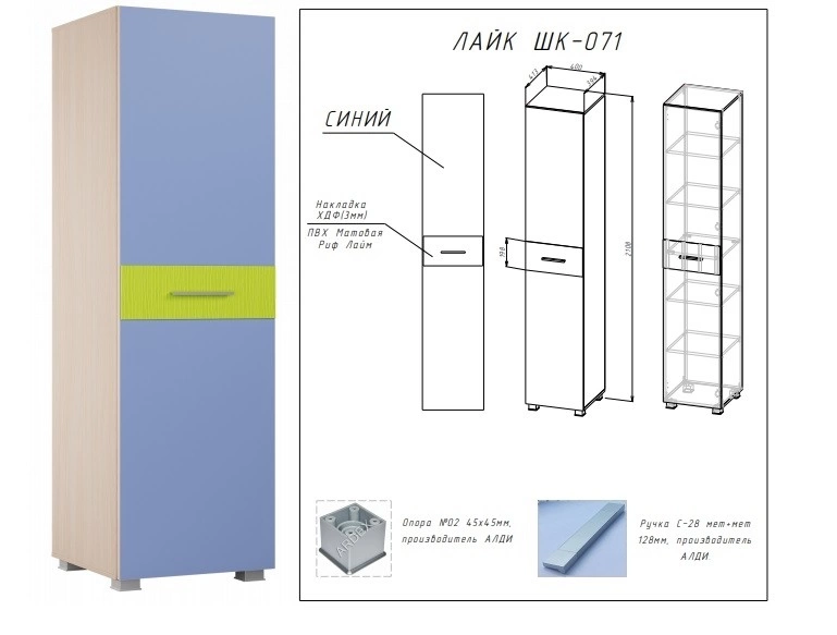 - Материал: ЛДСП 16мм/МДФ 10мм/Накладки на фасадах выполненные из ХДФ толщиной 3мм облицованного пленкой ПВХ Матовая Риф Лайм.