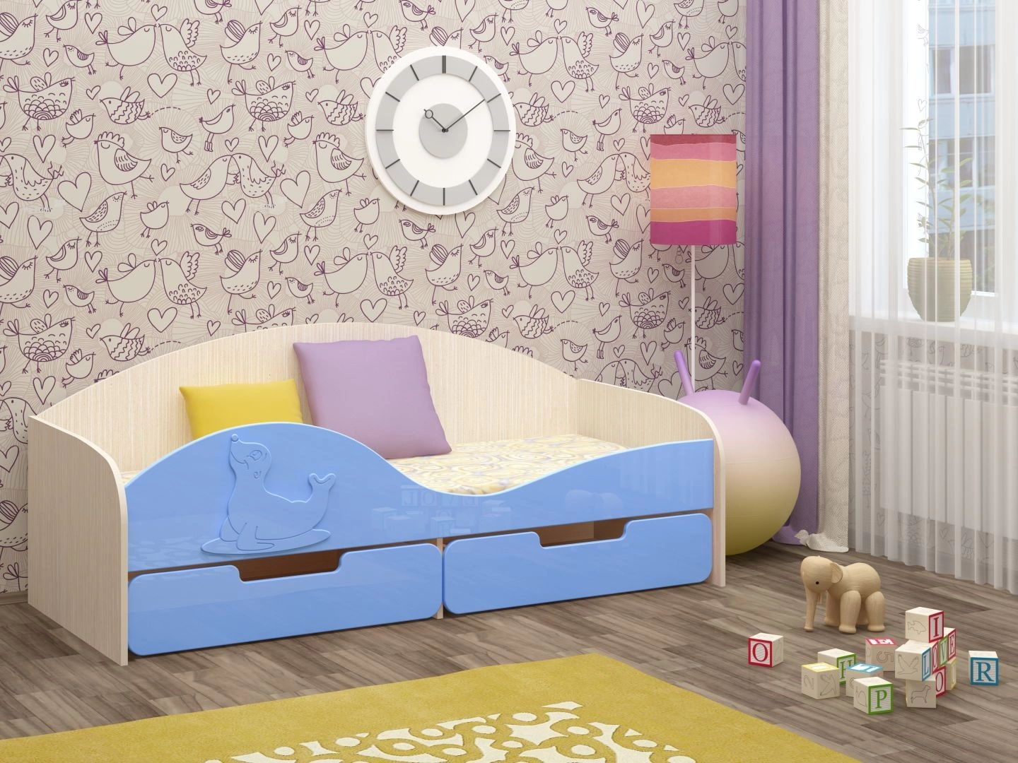 Кровать "Юнга-8" МДФ - превосходный выбор для детской комнаты вашего ребенка. Кровать оснащена бортиком с накладкой в виде милого тюленя, который защищает вашего ребенка от возможного падения во сне. Снизу кроватки находятся два выдвижных ящика, в которых удобно хранить детские игрушки, одежду или белье. Эта оригинальная кроватка поразит Вас своим милым дизайном.