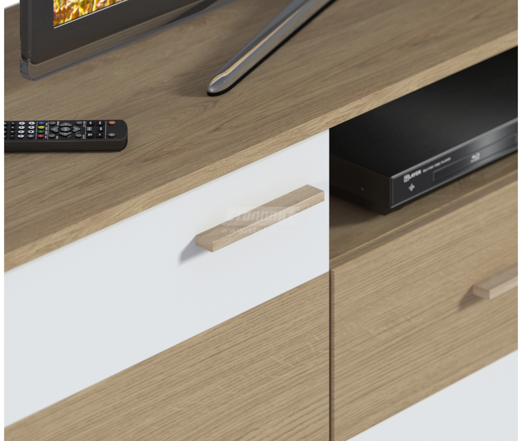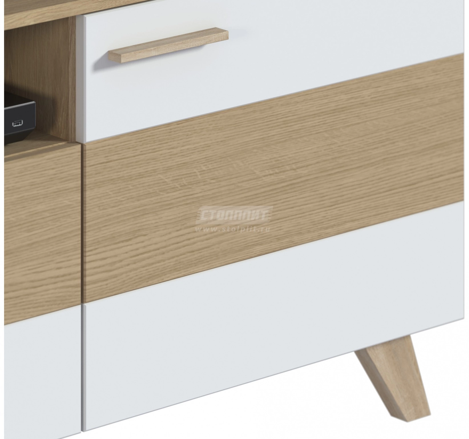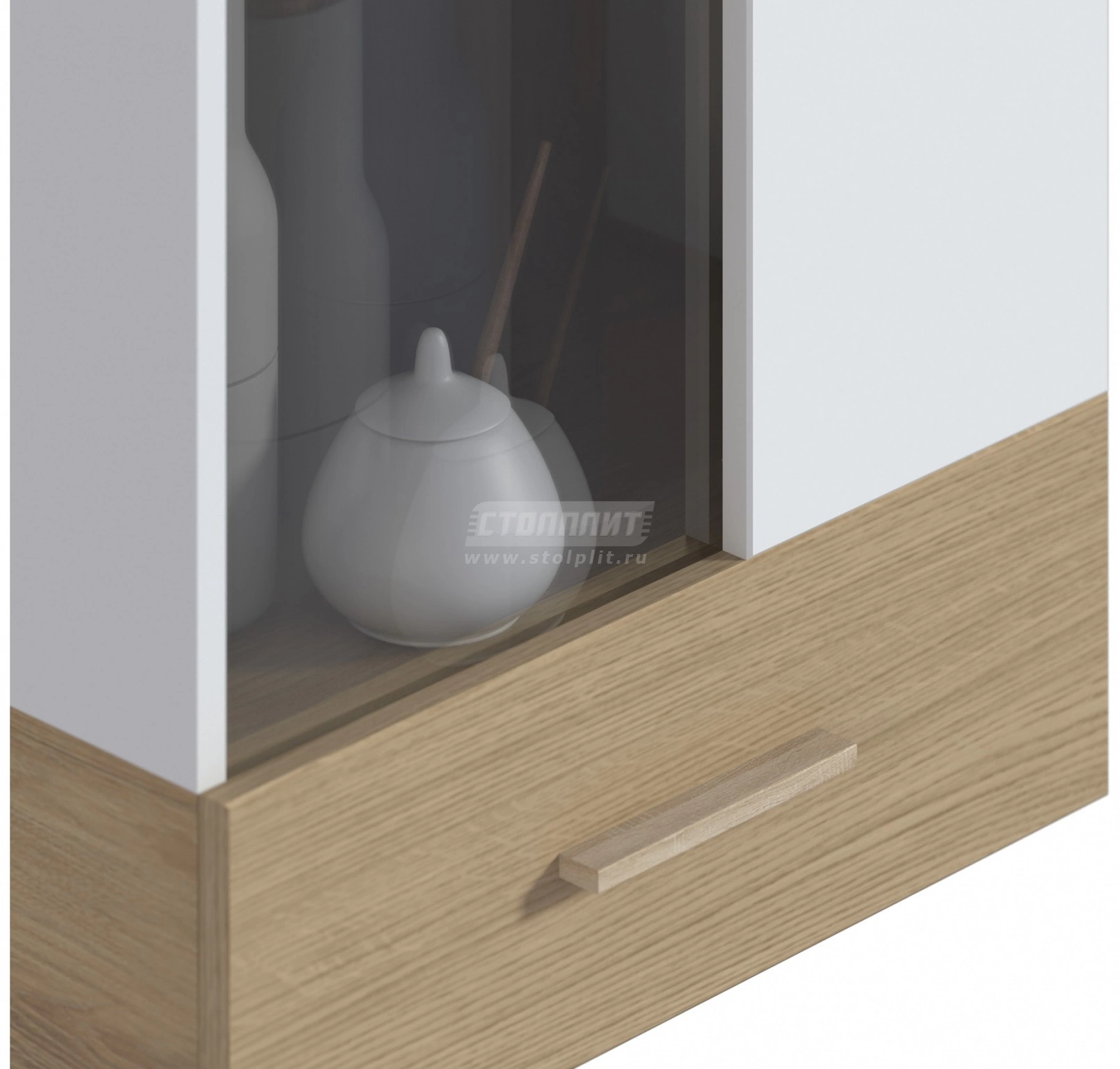 Материал: корпус ЛДСП ламинированная белая/гикори нат., фасад МДФ дуб светлый/белый
