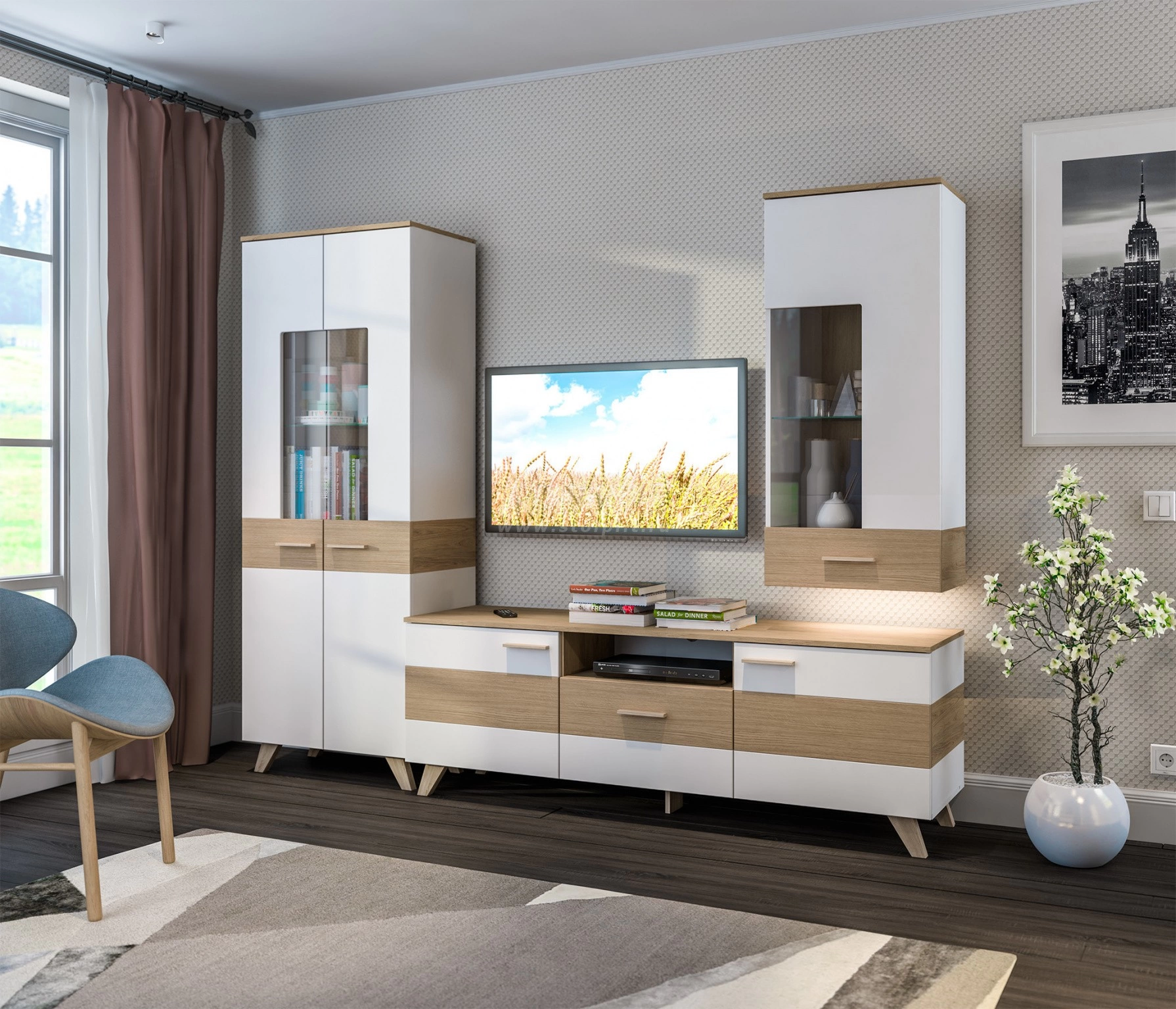 FINN СБ-2909/1 Витрина Гикори натуральный,Белый/Дуб светлый,БелыйFINN СБ-2910/1 Тумба Гикори натуральный,Белый/Дуб светлый,Белый