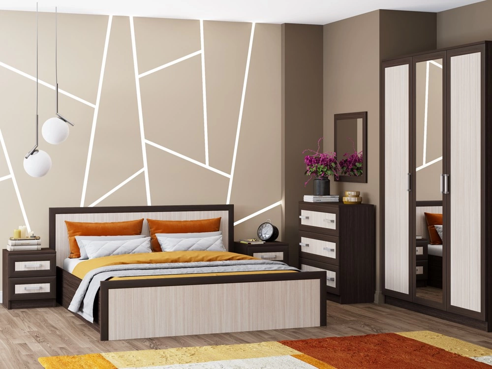 - Набор включает в себя всё необходимое: Кровать/Шкаф/Комод с Зеркалом/Тумба Прикроватная-2шт