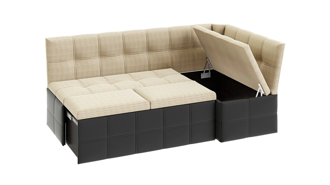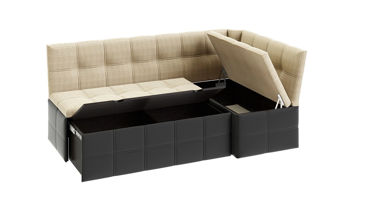 - Материал: ЛДСП/Обивочный материал- Кожзам темный/ткань светлая