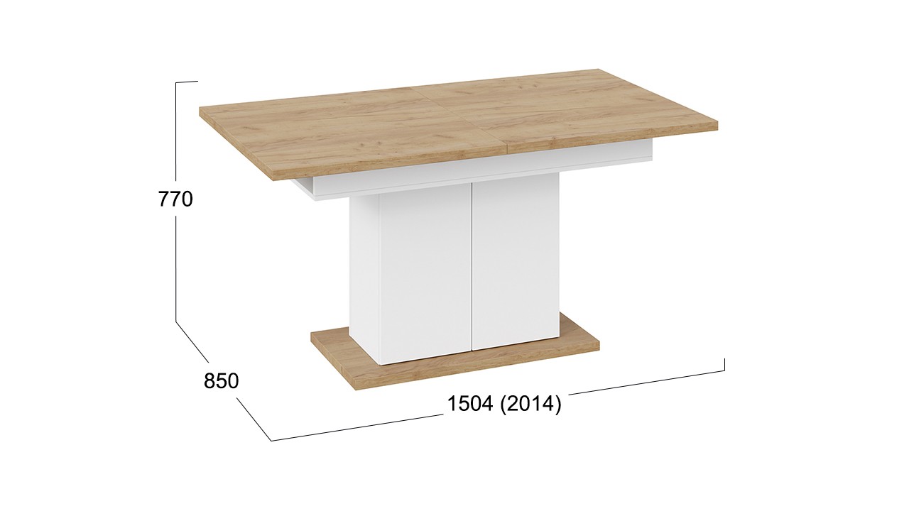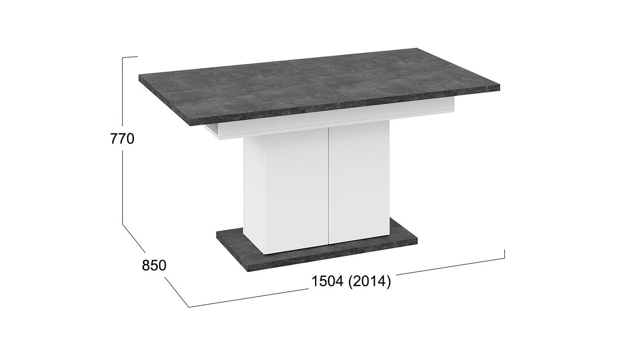 - Размеры стола: Длина 1504 мм (2014 мм в разложенном виде) x Ширина 850 мм x Высота 770 мм